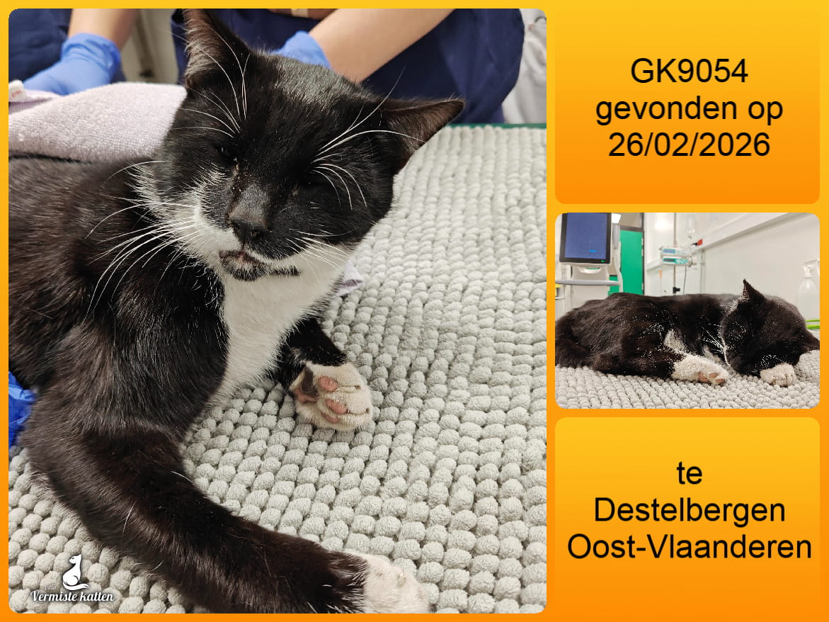 Datum gevonden: 26/02/2026 Straat: dendermondse steenweg kruising met kasteelstraat Gemeente: Destelbergen Provincie: Oost-Vlaanderen Geslacht: Kater Aanvullende kenmerken: Deze kat werd vandaag aangeboden op de spoeddienst van onze kliniek, binnengebracht door...