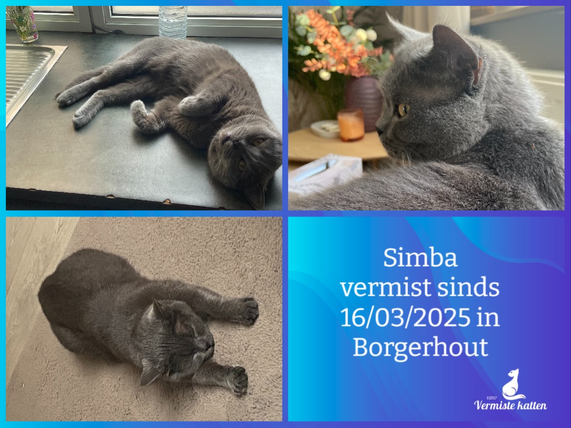 Naam kat: Moushi Datum vermist: 04/04/2025 Plaats verdwijning: Van Hovestraat Woonplaats: 2140 Borgerhout Provincie: Antwerpen Geslacht: Kater Gesteriliseerd/Gecastreerd: Ja Geboortedatum Kat: 06/06/2023 Chip: Ja Aanvullende kenmerken: Britse korthaar, gele ogen. Een halsbandje met mini...
