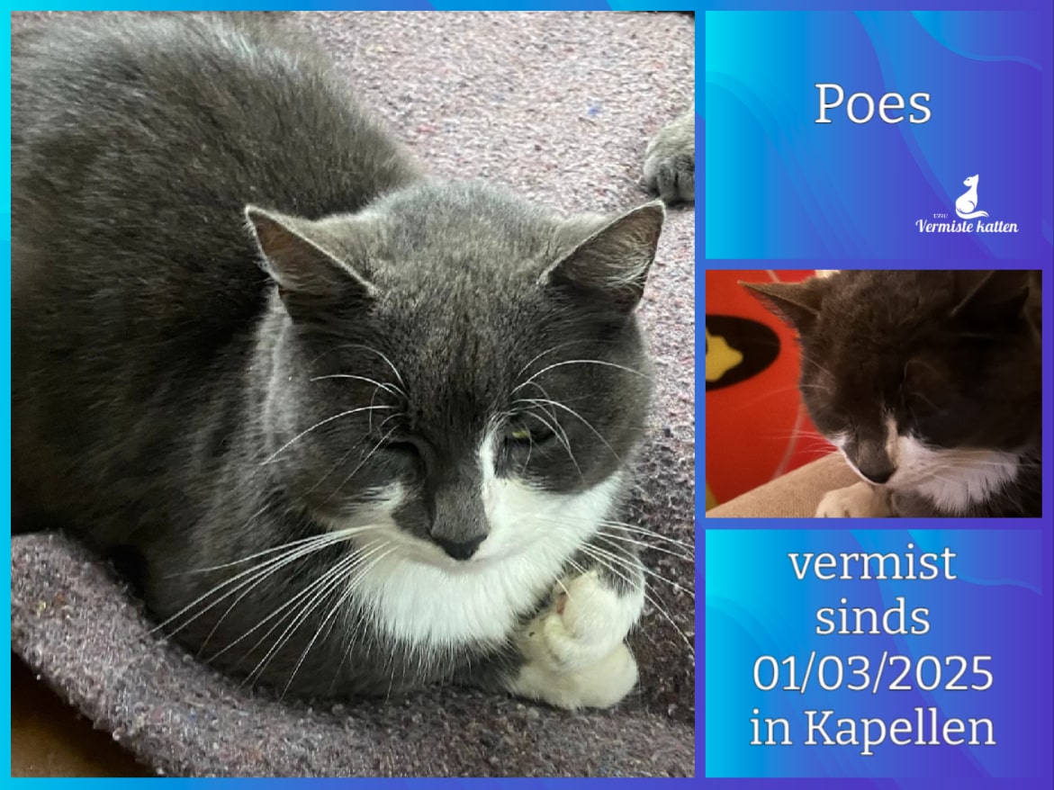 Naam kat: Smokey Datum vermist: 03/03/2025 Plaats verdwijning: Stokerijstraat Woonplaats: Wijnegem Provincie: Antwerpen Geslacht: Kater Gesteriliseerd/Gecastreerd: Ja Geboortedatum Kat: 07/09/2023 Chip: Ja Aanvullende kenmerken: Grijs/wit. Witte pootjes Mail: vermistekatten.be@gmail.com...