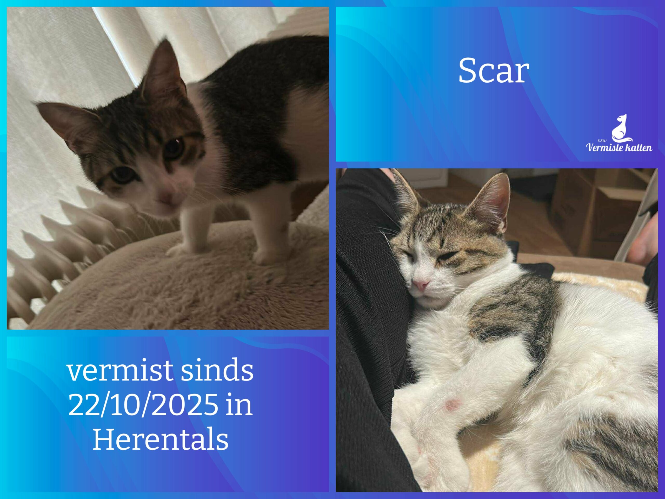 Naam kat: Lola Datum vermist: 03/11/2025 Plaats verdwijning: Raf Verhulstlaan Woonplaats: 2160 Wommelgem (Antwerpen) Provincie: Antwerpen Geslacht: Kattin Gesteriliseerd/Gecastreerd: Ja Geboortedatum Kat: 10/09/2010 Chip: Ja Aanvullende kenmerken: langharig grijze kat met een zwart bandje...