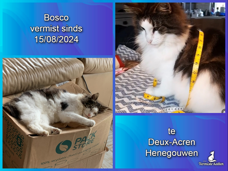 Naam kat: Memish Datum vermist: 02/10/25 Plaats verdwijning: Avenue de l' Espoir Woonplaats: Hornu Provincie: Henegouwen Geslacht: Kater Gesteriliseerd/Gecastreerd: Nee Geboortedatum Kat: 30/03/2024 Chip: Ja Aanvullende kenmerken: hij was met een zwarte harnasje Mail: vermistekatten.be@gmail.com...