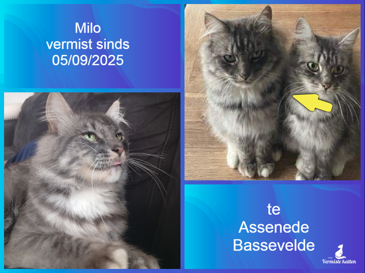 Naam kat: Mizuki Datum vermist: 15/09/2025 Plaats verdwijning: Burgemeester G. Dussartlaan Woonplaats: Lendelede Provincie: West-Vlaanderen Geslacht: Kater Gesteriliseerd/Gecastreerd: Ja Geboortedatum Kat: 3 jaar Chip: Nee Aanvullende kenmerken: Onze kat Mizuki is vermist. Hij is...