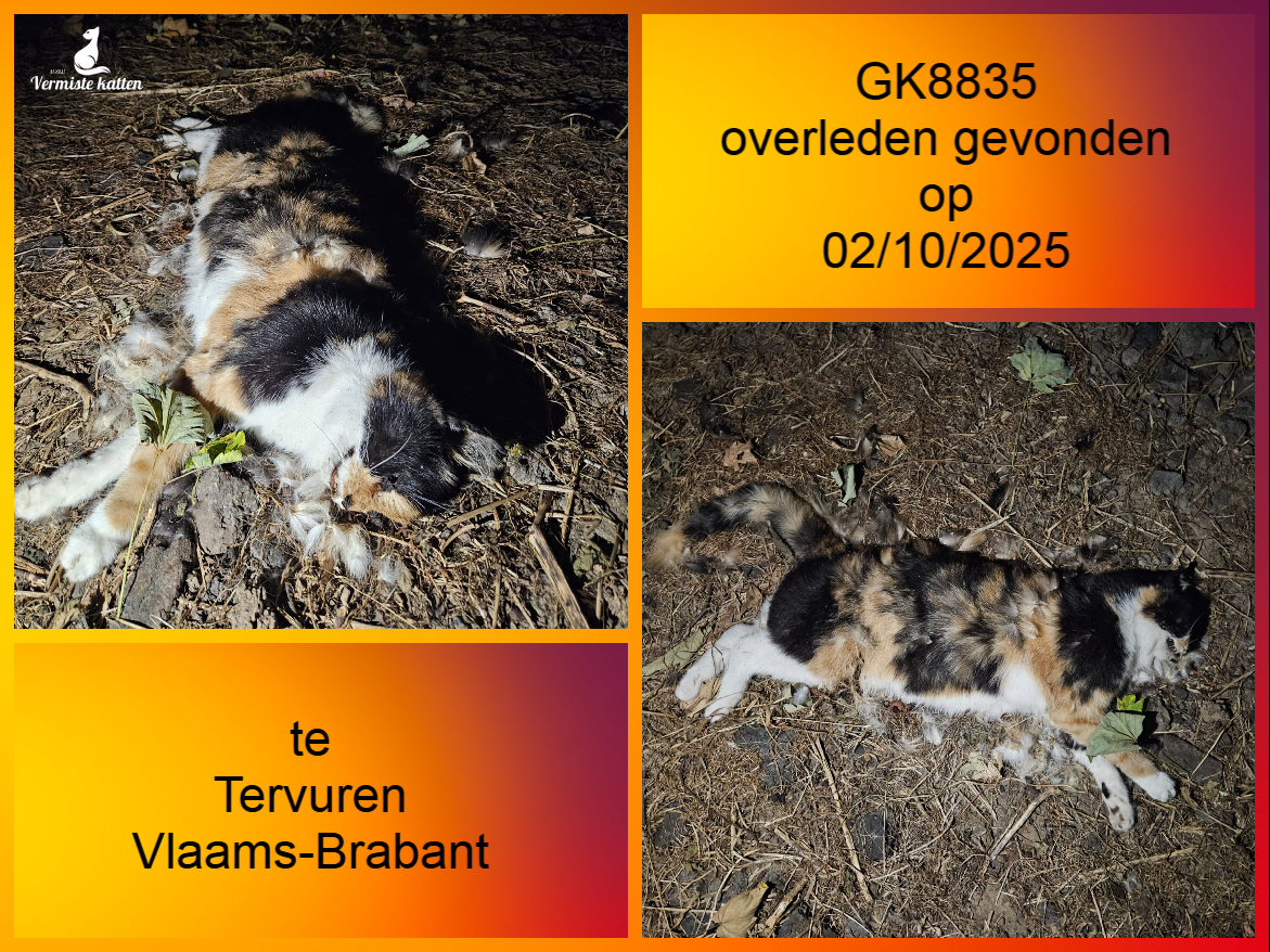 Datum gevonden: 15/09/2025 Straat: Zuidstraat Gemeente: Beverlo Provincie: Limburg Geslacht: Geen idee Aanvullende kenmerken: Overleden. Vermoedelijk aangereden. Het katje is ondertussen opgehaald. Men ging ook de chip uitlezen. Mail: vermistekatten.be@gmail.com ...
