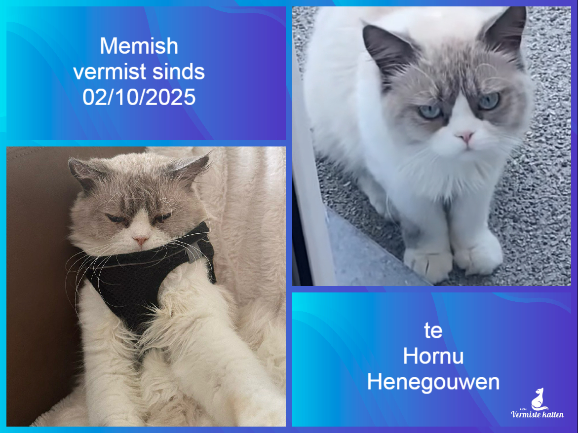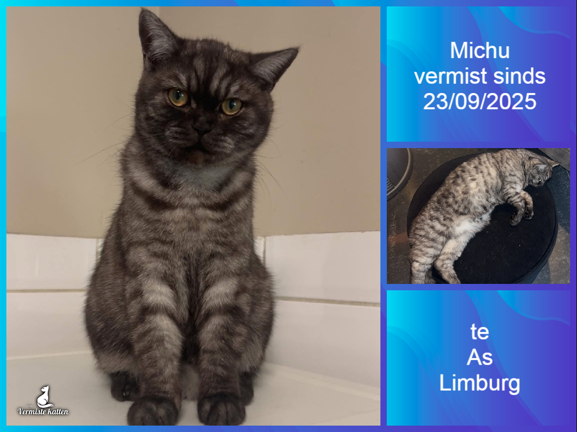 Naam kat: Jerom Datum vermist: 11/12/2025 Plaats verdwijning: Esdoorndreef Woonplaats: Schoten Provincie: Antwerpen Geslacht: Kater Gesteriliseerd/Gecastreerd: Ja Geboortedatum Kat: 10/08/2009 Chip: Ja Aanvullende kenmerken: Britse korthaar, kaalgeschoren buik Mail: vermistekatten.be@gmail.com...
