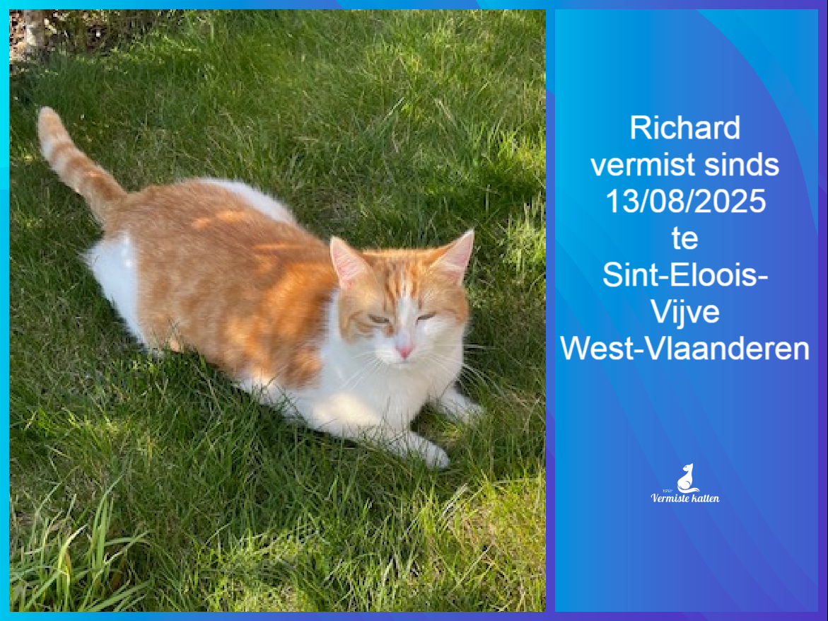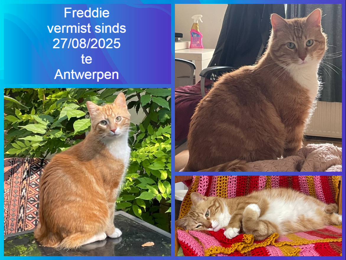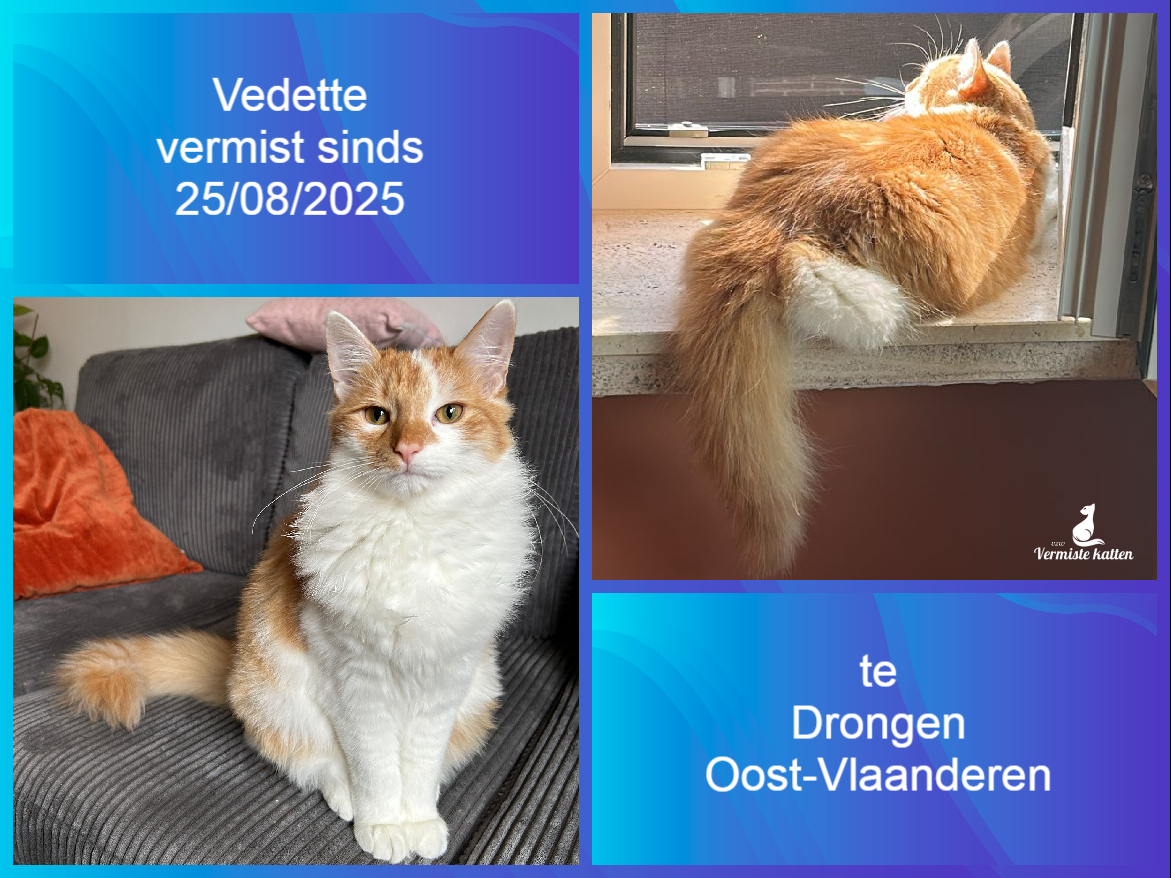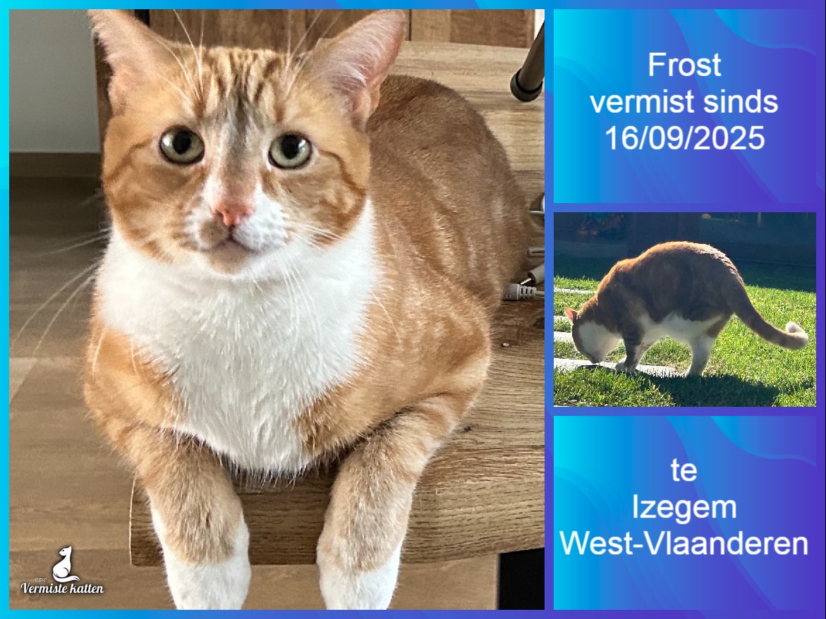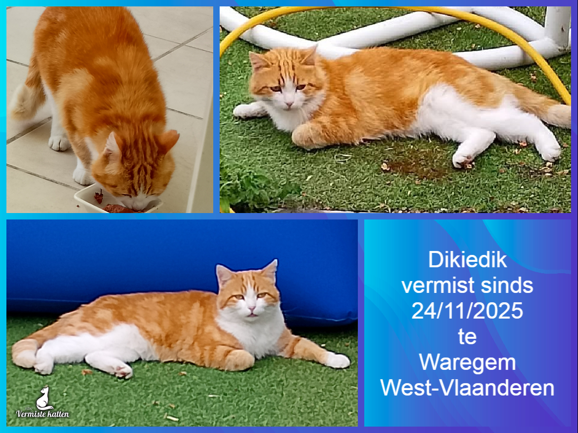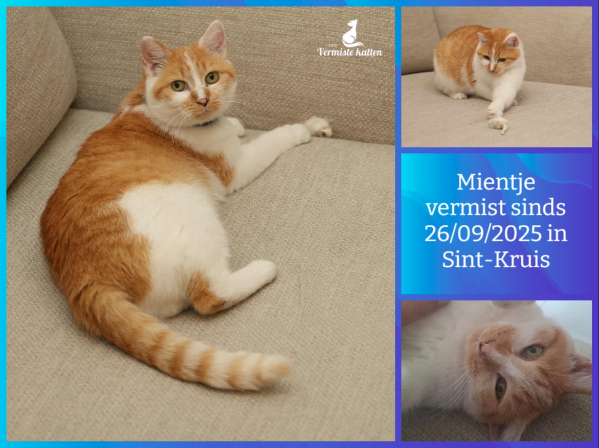 Naam kat: Pickles Datum vermist: 09/12/2025 Plaats verdwijning: Kruideniersstraat, Woonplaats: Bevel Provincie: Antwerpen Geslacht: Kater Gesteriliseerd/Gecastreerd: Ja Geboortedatum Kat: 01/06/2022 Chip: Ja Aanvullende kenmerken: Een rosse/witte kat heeft op zijn hoofd in het wit...