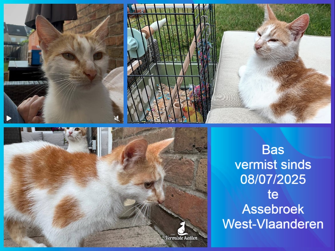 Naam kat: Richard Datum vermist: rond 13/08/2025 Plaats verdwijning: Laatst thuis gezien Gemeente: 8793 Sint-Eloois-Vijve Provincie: West-Vlaanderen Geslacht : man Gesteriliseerd/Gecastreerd: gecastreerd Chip: neen Geboortedatum/Geschatte leeftijd: 1 jaar Aanvullende kenmerken: Rosse kater met wit...