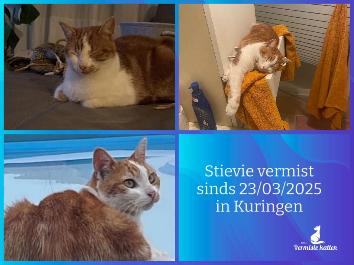 Naam: Simba Datum vermist: 18 april 2025 Plaats verdwijning: Maurits Sabbelaan Woonplaats: Antwerpen-Kiel Provincie: Antwerpen Geslacht: Kater Gesteriliseerd/Gecastreerd: Nee Leeftijd : ongeveer 2 jaar Chip: Nee Aanvullende kenmerken: Hij is een beetje dik en...