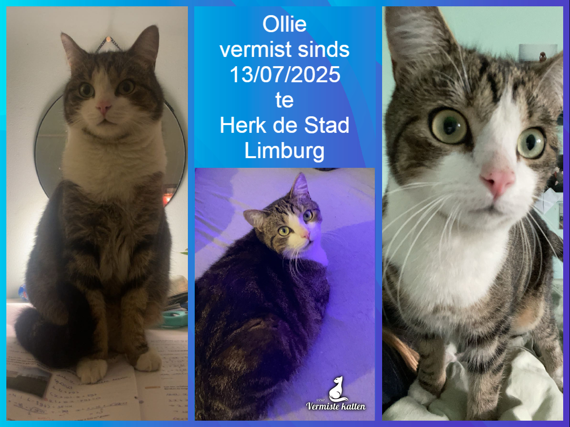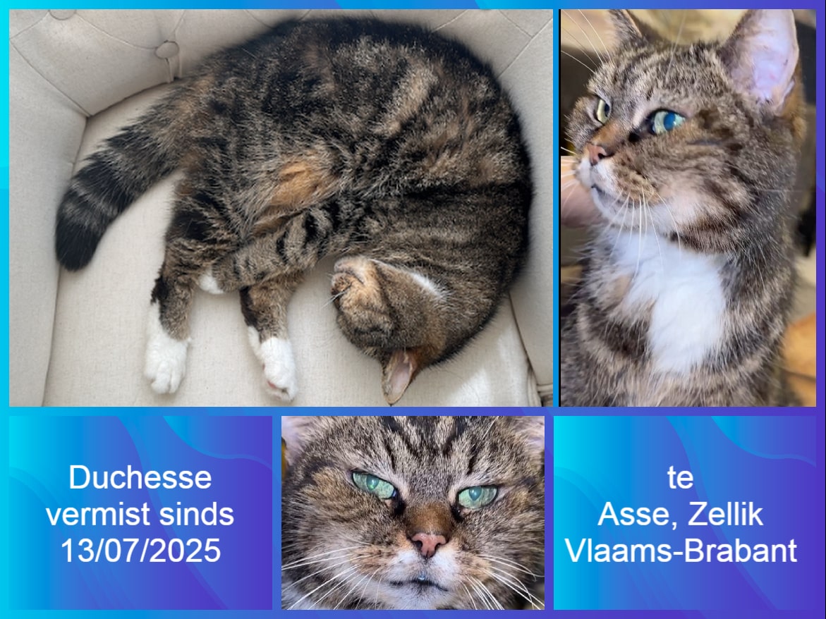 Naam kat: Lola Datum vermist: 28/08/2025 Plaats verdwijning: Oosterloseweg Woonplaats: Geel Provincie: Antwerpen Geslacht: Kattin Gesteriliseerd/Gecastreerd: Ja Geboortedatum Kat: 24/04/2024 Chip: Ja Aanvullende kenmerken: Tijger geprint met witte voetjes licht van kleur ook Mail: vermistekatten.be@gmail.com...