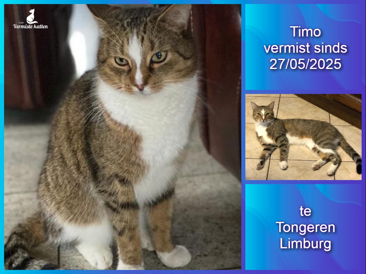 Naam kat: Tuc Datum vermist: 02/07/2025 Plaats verdwijning: Alois Blommaertstraat Woonplaats: Wuustwezel Provincie: Antwerpen Geslacht: Kater Gesteriliseerd/Gecastreerd: Ja Geboortedatum Kat: 11/04/2020 Chip: Ja Aanvullende kenmerken: Europese korthaar tijger grijs Mail: vermistekatten.be@gmail.com...