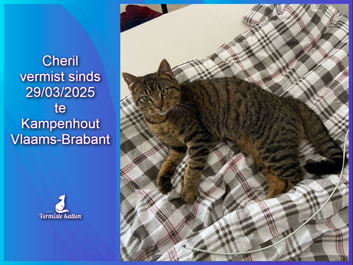 Naam kat: Loenzie Datum vermist: 29/4/25 Plaats verdwijning: Genenbosstraat Woonplaats: 3560 Lummen Provincie: Limburg Geslacht: Kater Gesteriliseerd/Gecastreerd: Ja Geboortedatum Kat: 31/05/2010 Chip: Ja Aanvullende kenmerken: Hij is door zijn leeftijd mager, en 1 oogje...