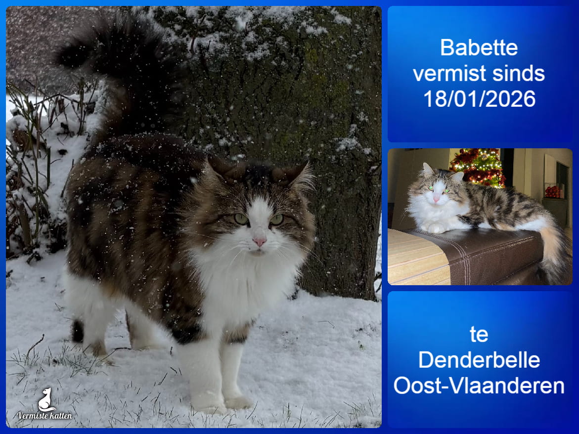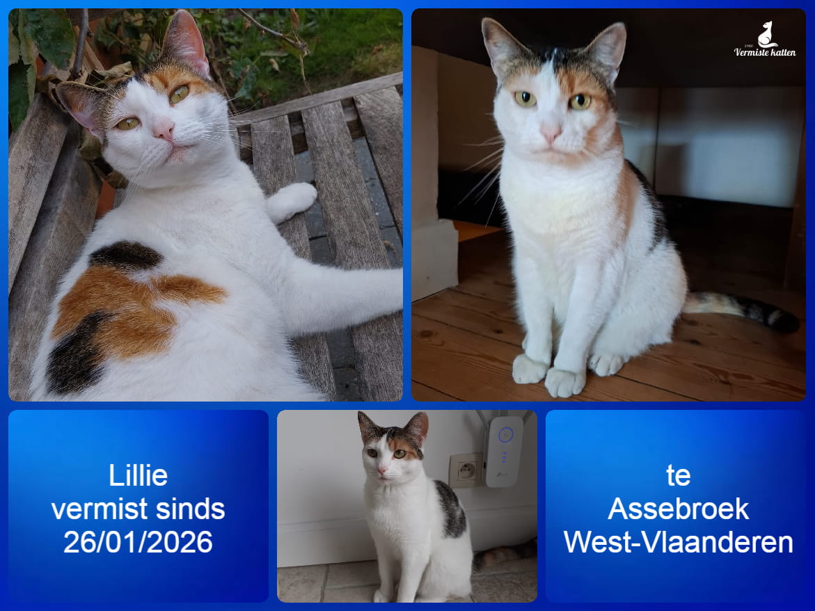 Naam kat: Tokyo Datum vermist: 27/01/2026 Plaats verdwijning: Kortrijkstraat, Woonplaats: Ingelmunster Provincie: West-Vlaanderen Geslacht: Kattin Gesteriliseerd/Gecastreerd: Ja Geboortedatum Kat: 25/04/2021 Chip: Ja Aanvullende kenmerken: Ras ' Belgique', witte poten, hals: wit met beige rand,...