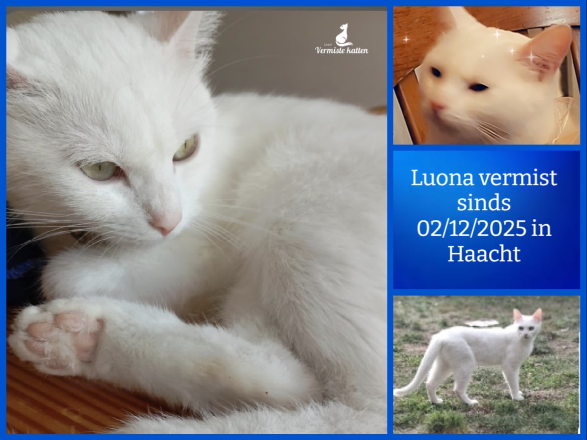 Naam kat: Simba Datum vermist: 9/12/2025 Plaats verdwijning: Korte heide Woonplaats: Deurne diest Provincie: Vlaams-Brabant Geslacht: Kater Gesteriliseerd/Gecastreerd: Ja Geboortedatum Kat: 08/2019 Chip: Ja Aanvullende kenmerken: Witte kat met zwarte vlekken en zwart bandje...