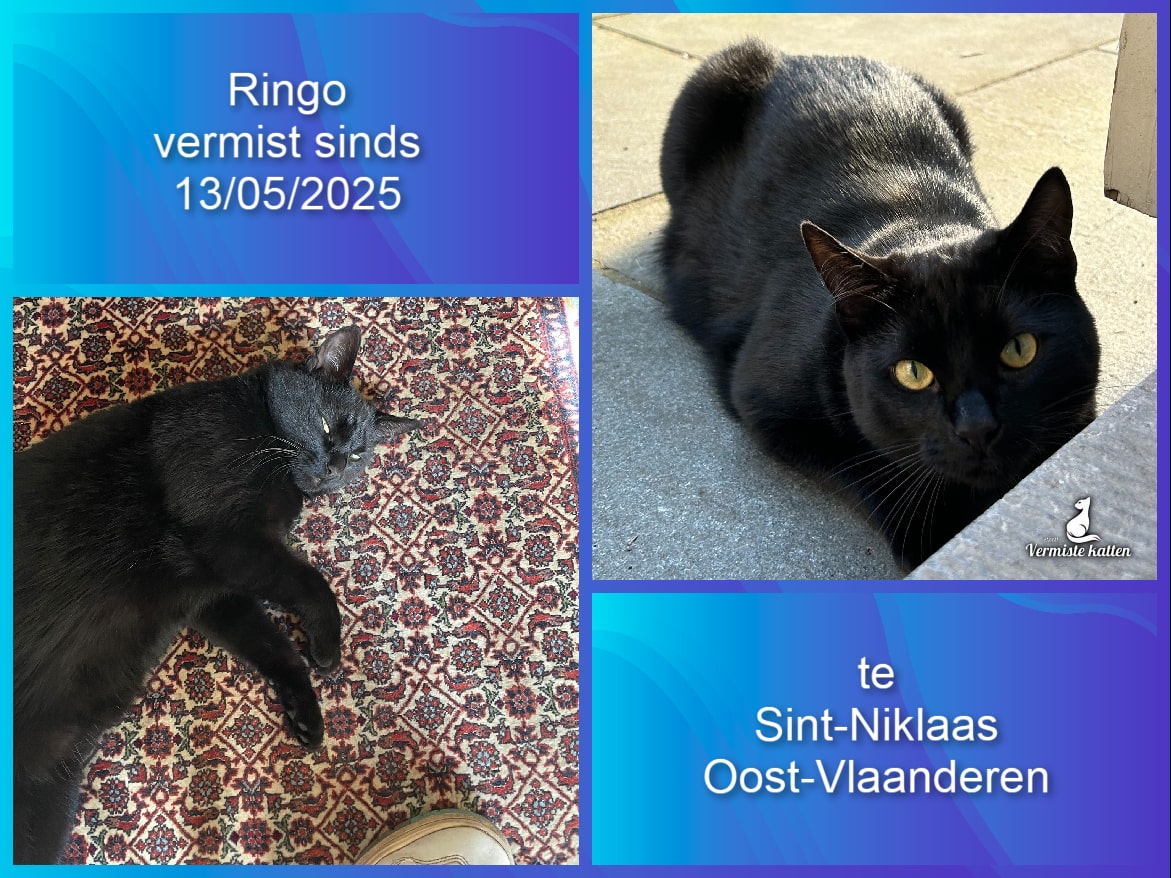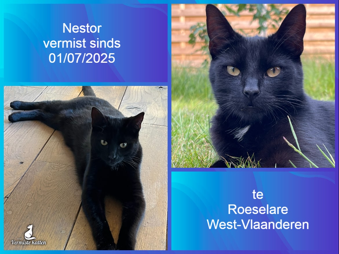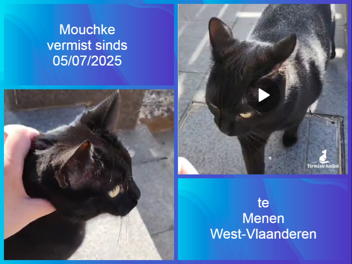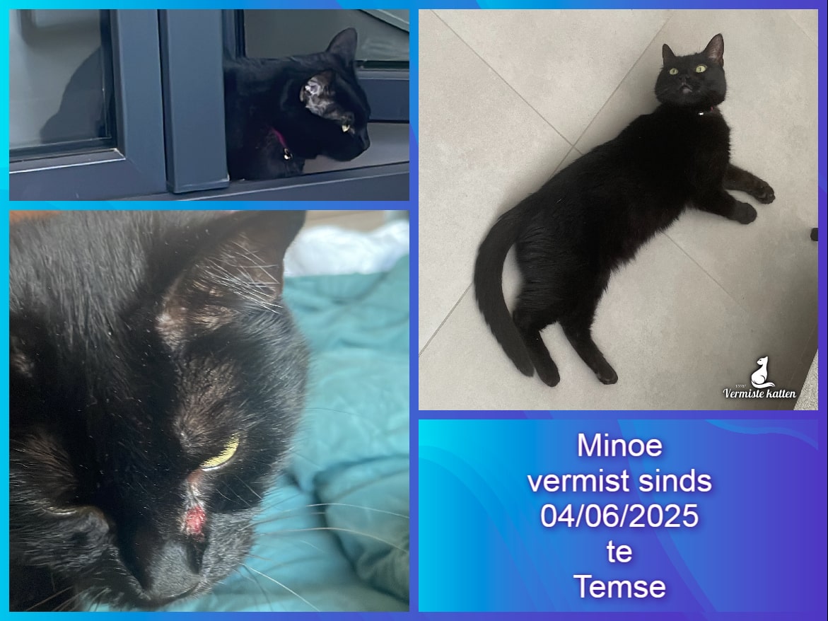Naam kat: Minous Datum vermist: 14/07/2025 Plaats verdwijning: Windmolenstraat Woonplaats: Hoboken Provincie: Antwerpen Geslacht: Kater Gesteriliseerd/Gecastreerd: Ja Geboortedatum Kat: 8 Chip: Ja Aanvullende kenmerken: Zwart, langharige kater. Gele ogen. Zachtaardig, maar wel bang van...